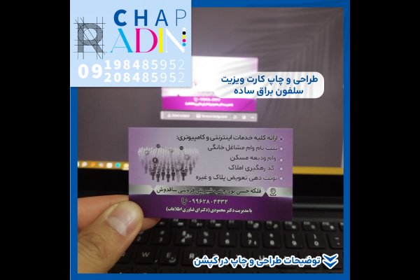 ✅ خدمات ما (با کیفیت چاپ تضمینی): -طراحی و چاپ بنر تبلیغاتی در هر سایز -تراکت سیاهسفید و رنگی برای هر کسبوکار -پوستر با وضوح بالا و ماندگاری رنگ -چاپ جزوه و کتاب -پاپآپ و استند -کارت ویزیت و کارت پرسنلی شکیل( حداقل 50 و حداکثر نامحدود) -چاپ اختصاصی روی تیشرت و لیوان با طرح دلخواه -ساخت مهر ژلاتینی و لیزری در هر سایز و طرح <br> چرا صنایع طراحی و چاپ رادین؟ <br>